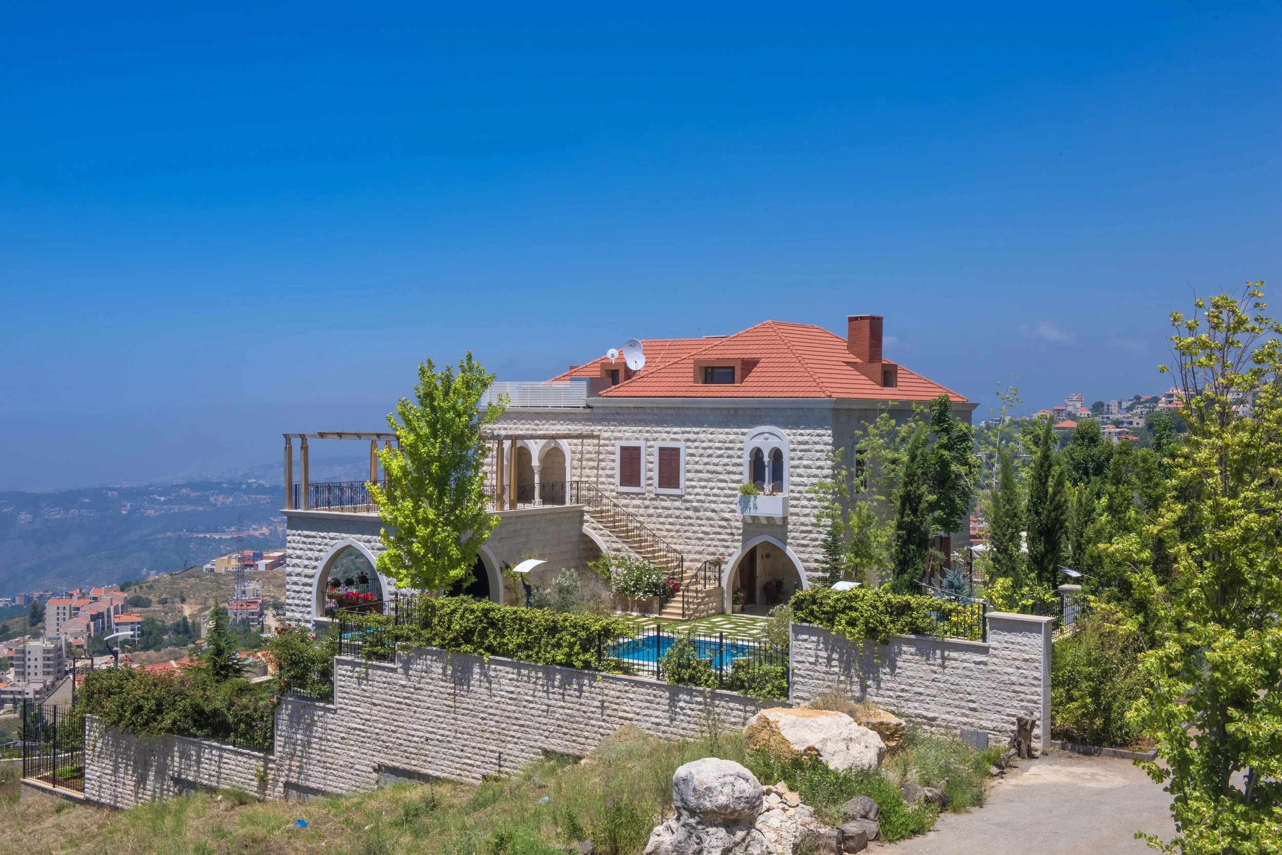 • Natural Lebanese limestone with distinctive traditional red brick roof